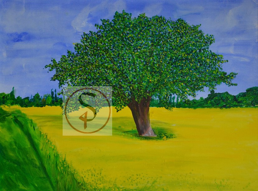 Baum im Rapsfeld