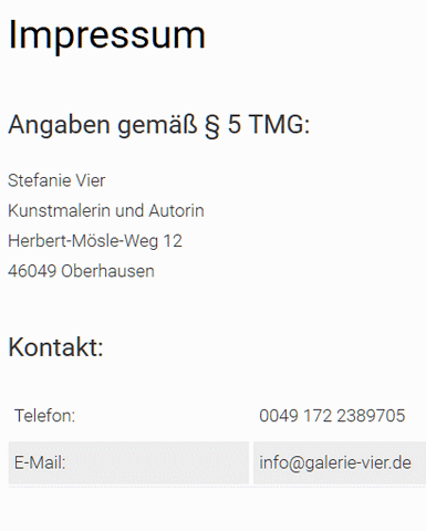 Nach geltendem Recht sind wir verpflichtet, Verbraucher auf die Existenz der Europäischen Online-Streitbeilegungs-Plattform hinzuweisen, die für die Beilegung von Streitigkeiten genutzt werden kann, ohne dass ein Gericht eingeschaltet werden muss. Für die Einrichtung der Plattform ist die Europäische Kommission zuständig. Die Europäische Online-Streitbeilegungs-Plattform ist hier zu finden: http://ec.europa.eu/odr. Unsere E-Mail lautet: info@galerie-vier.de